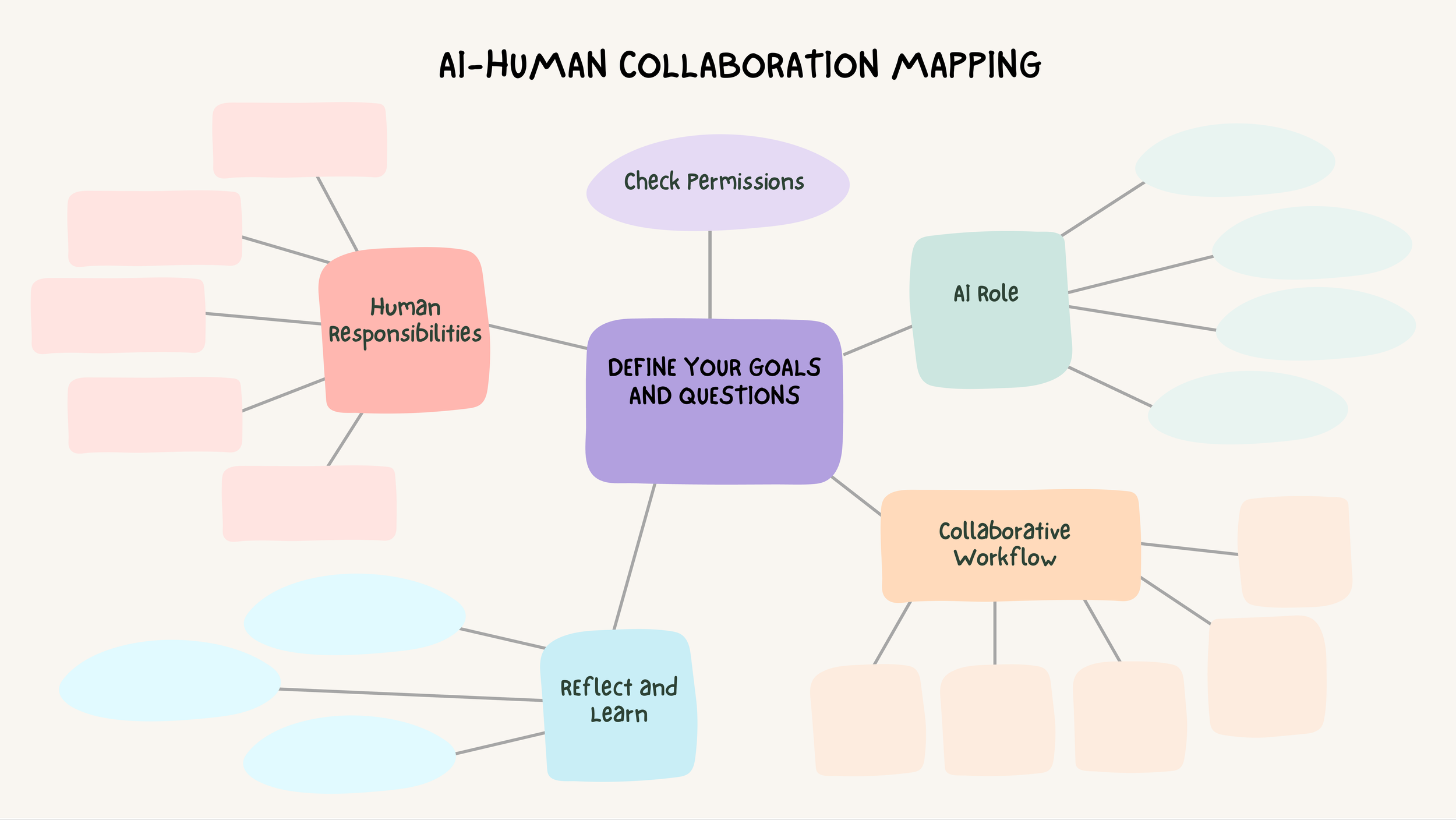 Collaboration Mapping is a practical way to think through what the true objective, what is permitted, what the human owns, what AI is being asked to do, where review happens, and what uncertainty remains. These questions are easy to skip when people are under pressure and the tool seems impressively capable. But that is exactly when they matter most. Mapping does not need to be exhaustive. For routine, low-stakes tasks, a quick mental check may be enough. The fuller process is most valuable when the stakes are higher, the workflow is new, or the consequences of getting it wrong are hard to reverse.